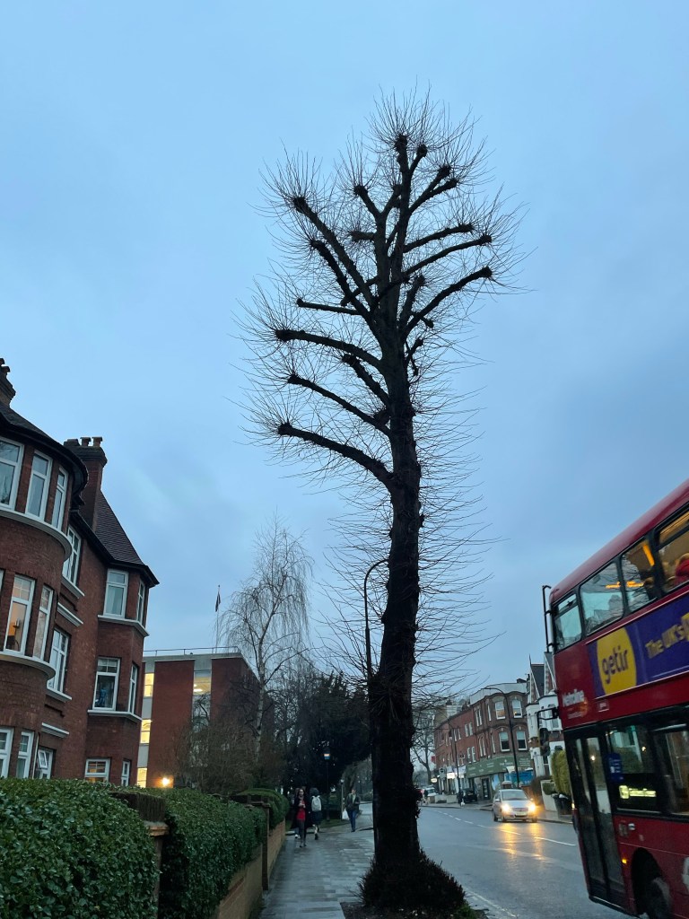 I lost the first blush of morning, plane trees naked on West End Lane waiting for footsteps, cars and buses. Salted air, toddlers in knitted hats, drainpipe jeans and tethered gloves; conversation chirrups on. The last blush came and left, a blackbird creeps into his nest; the city sighs and turns to night. The moon, a silver ring-pull rests, the city sighs and turns to night. Shereen Abdallah ©
